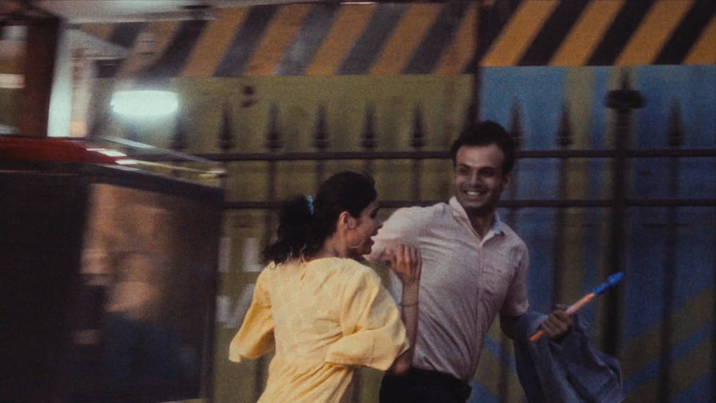 Priyankar shot the film himself, on a handheld camcorder. First, it was because of convenience – it was easy and liberating to be able to simply pick up the camera and go out to make your film, without having to wait around for projects to be greenlit, and without being answerable to anyone. But it becomes more than that – ‘the film is about voyeurism in a way,’ Priyankar tells me. ‘I realised that my limitation helped with the script and I went all-in.’ The grainy texture of his 8-bit camcorder, which he uses to shoot Preeti and Samrat’s ‘real’ life, is also in sharp contrast with the 4K resolution in which we watch their reels.